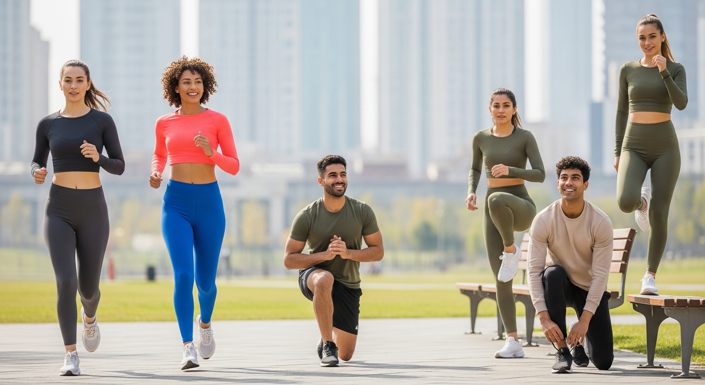 Moreover, every piece is made to adapt to real life. Whether you’re chasing your fitness goals or running daily errands, this gear is designed to move with you. For instance, quick-dry technology and flexible materials ensure your outfit keeps up with your pace.