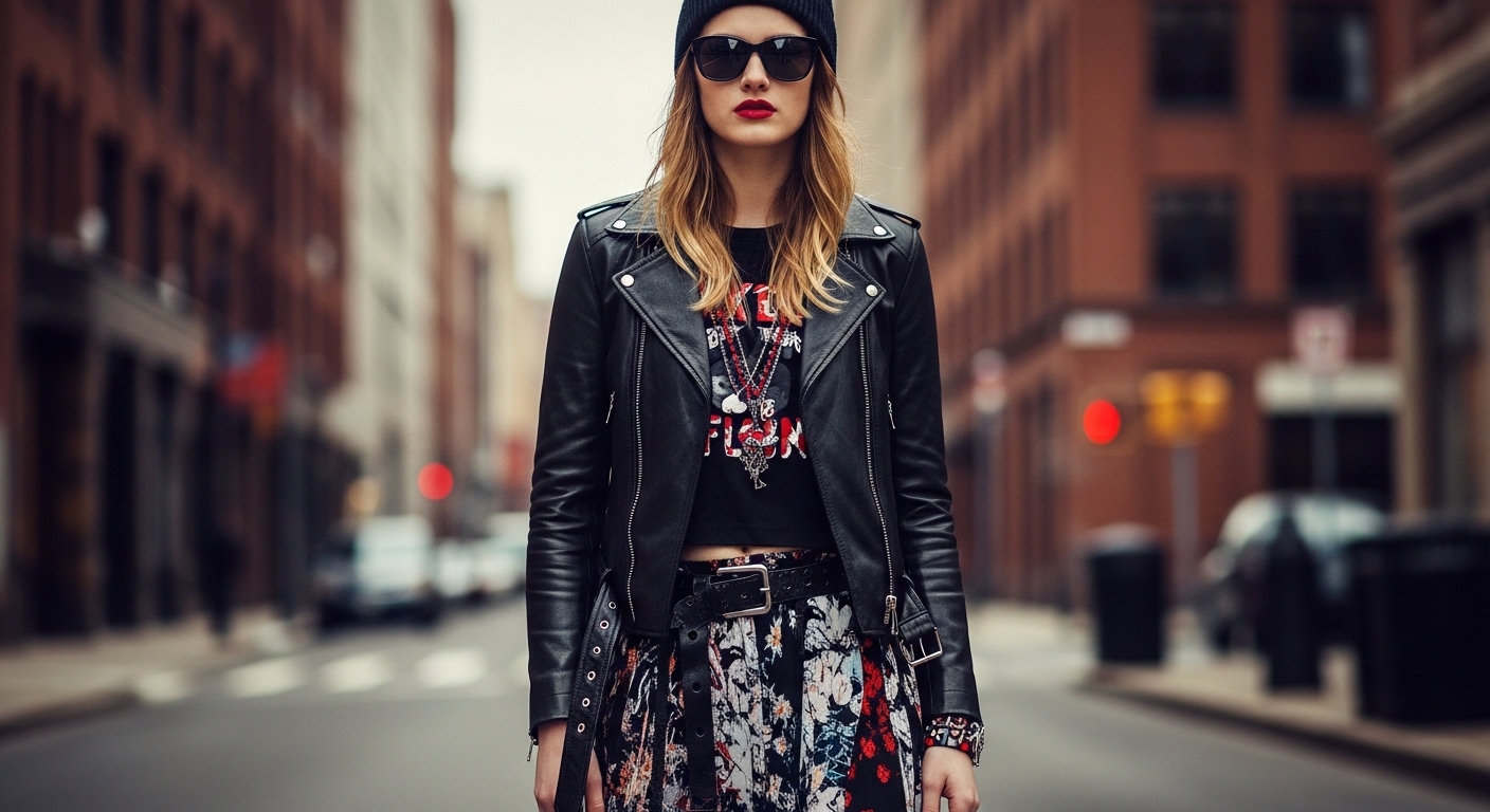 - Leather and Denim – Classic staples such as leather jackets and distressed denim exude effortless rebellion.
